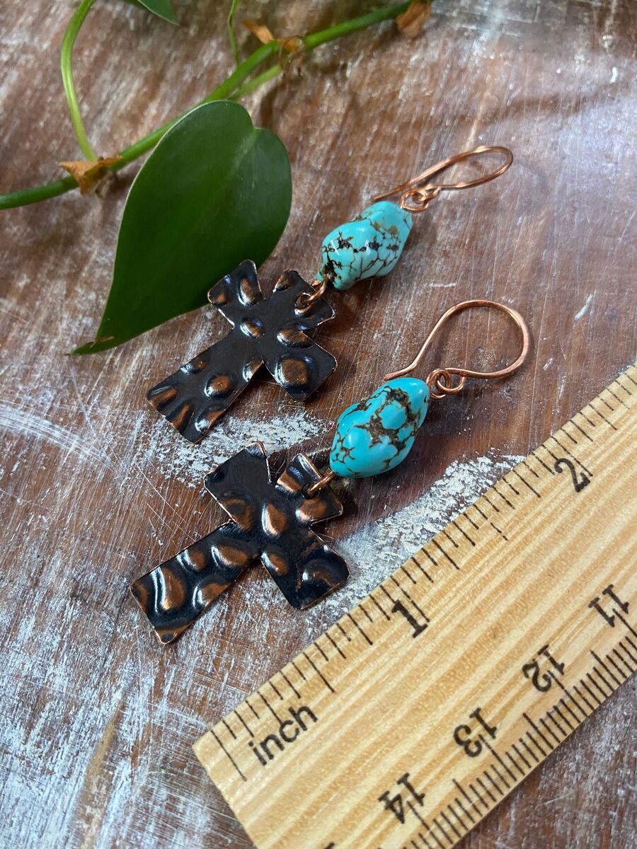 African Turqoiuse Copper Cross Earrings