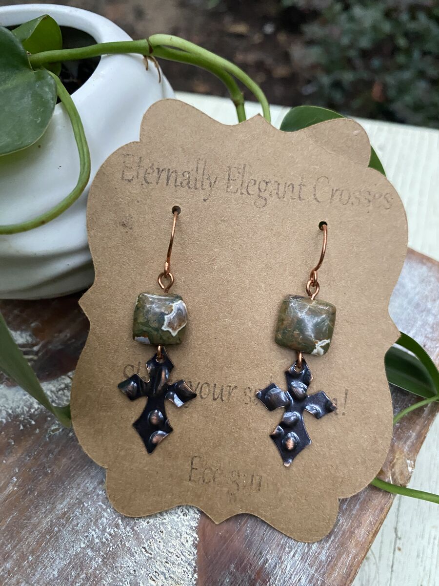 Perfect for everyday wear or special occasions, the Forest Jasper Copper Cross Earrings make a thoughtful gift for loved ones who cherish their faith and appreciate beautiful, nature-inspired jewelry. Let your style reflect your beliefs and inspire others to embrace their own salvation stories with these enchanting earrings.