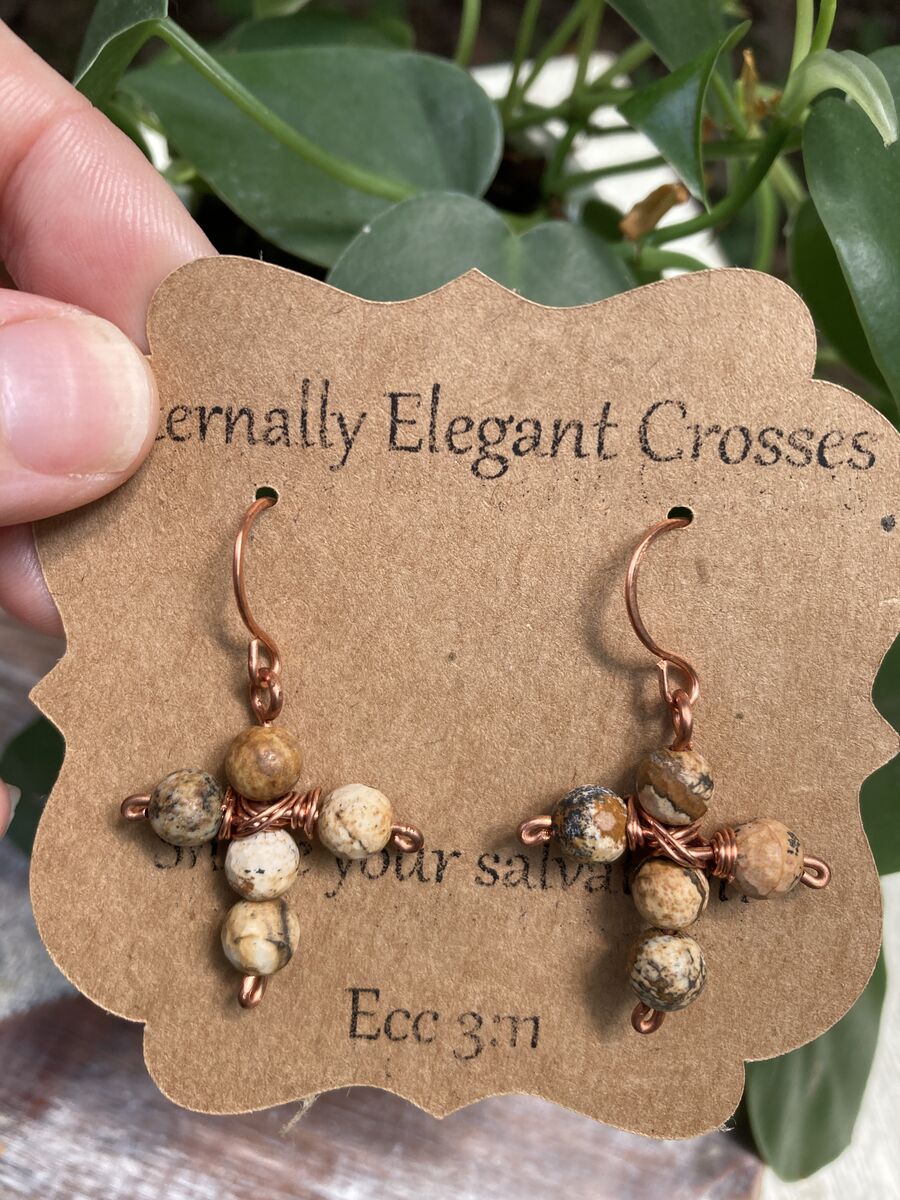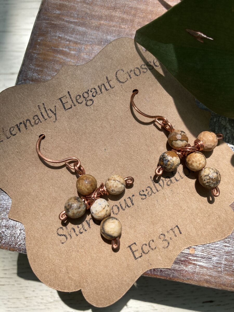 Whether you're dressing up for a church event or enjoying a casual day out, the Picture Jasper Copper Earrings are versatile enough to enhance any outfit. Let them inspire conversations about faith and hope, creating connections with others who share your journey.