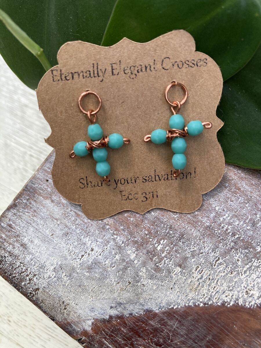 Share your story of salvation and let these earrings be a testament to your faith. Wear them as a daily reminder of the hope and light that comes from believing, and let their beauty shine as brightly as your convictions. Embrace your spirituality with these enchanting Teal Czech Crystal Cross Stud Earrings—a perfect gift for yourself or a loved one embarking on their own faith journey.