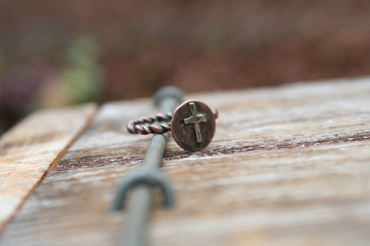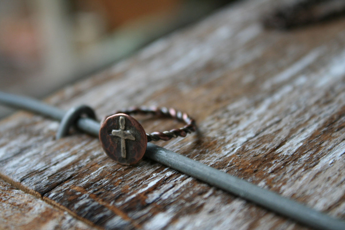 This dainty cross ring is made of copper and nickel and can be made to fit any finger. Just leave your ring size during checkout and I will make sure that the proportions of the ring will fit you.