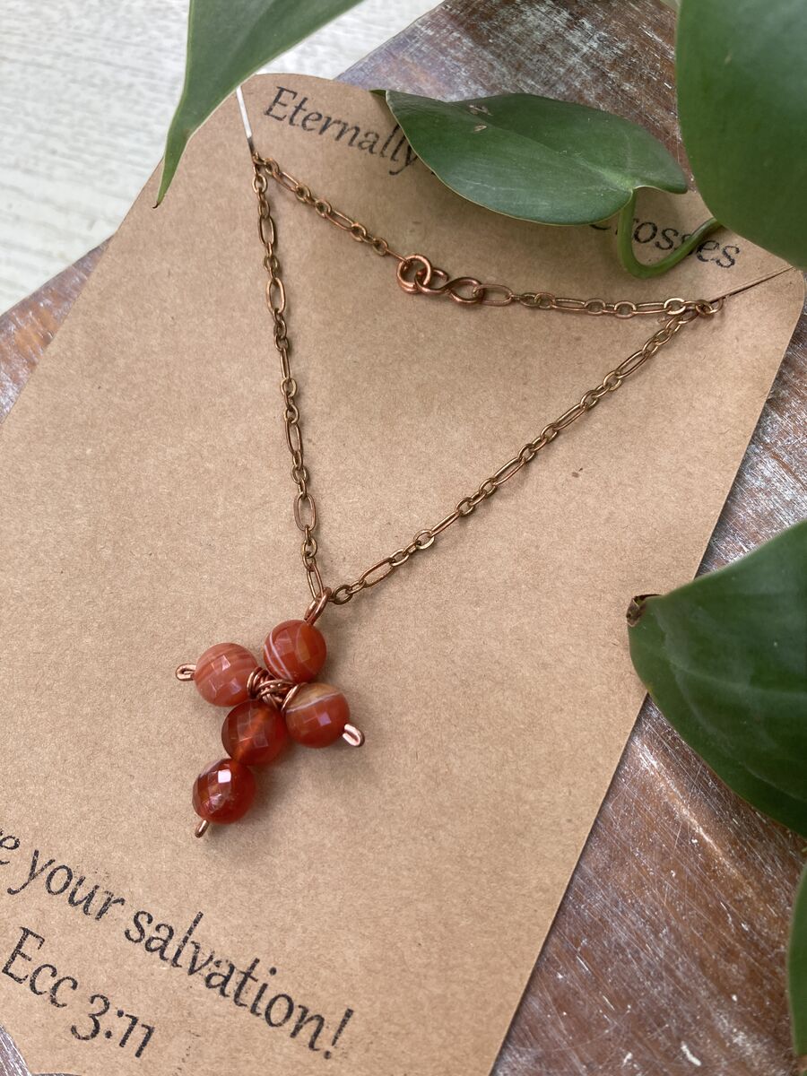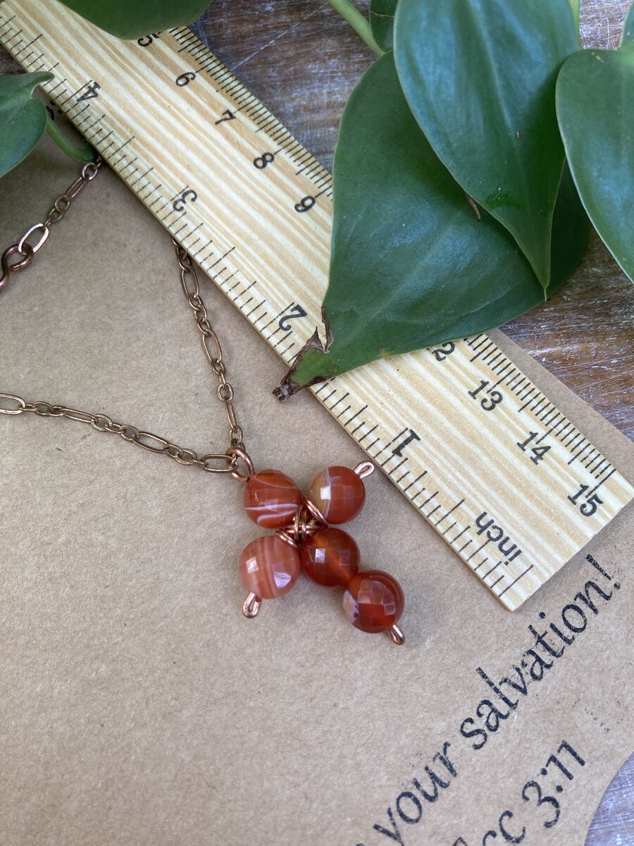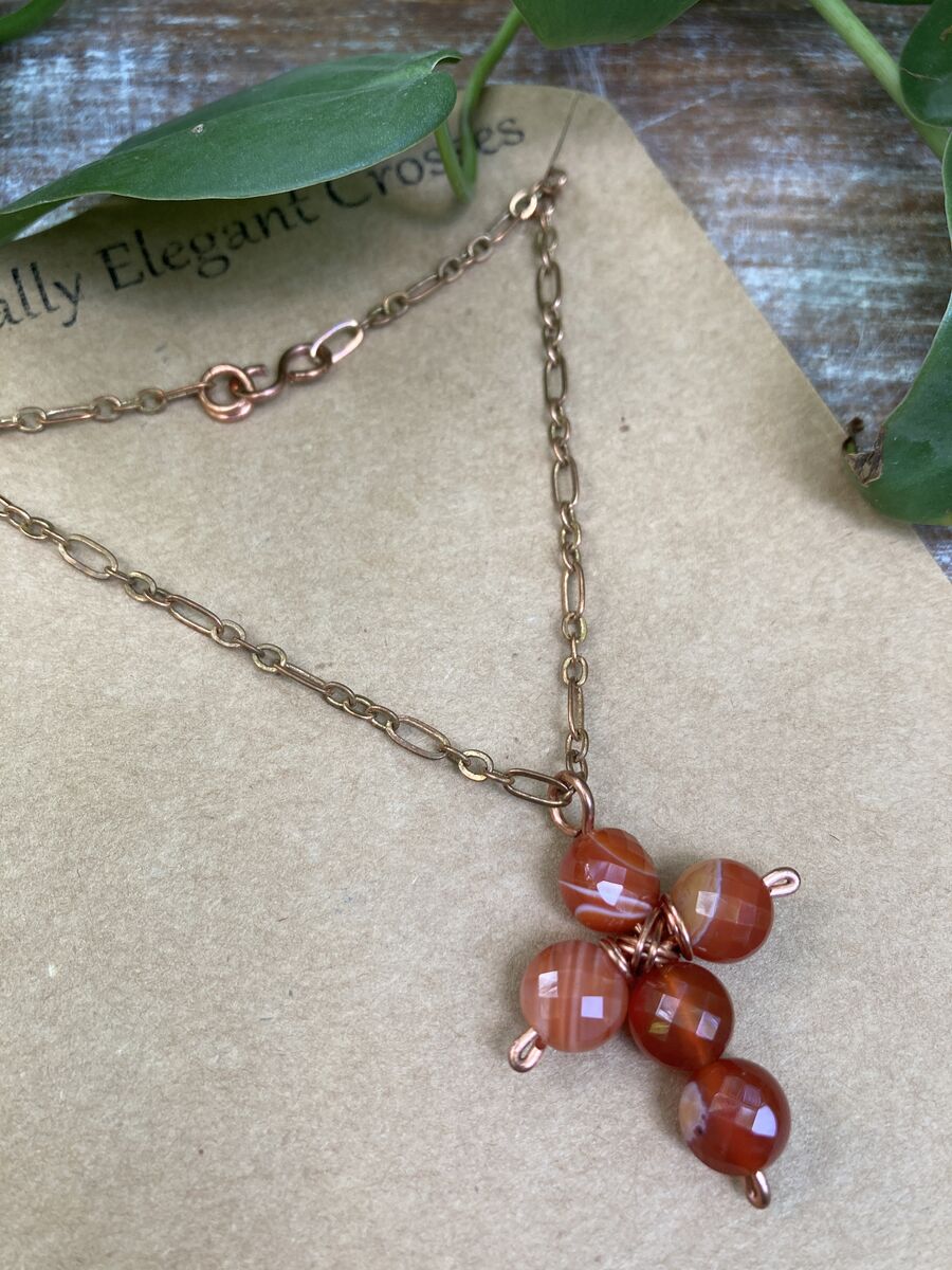 Orange Agate Gemstone Cross Copper Necklace listed in: